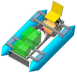 Автономность - катамаран оснащен удобным местом для оператора, гребным ножным приводом и рулем